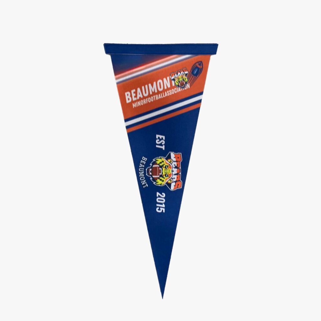 Do you want an elevated take home flag for your team? Opt for felt pennants. Great for a more vintage feel, these are sure to impress.