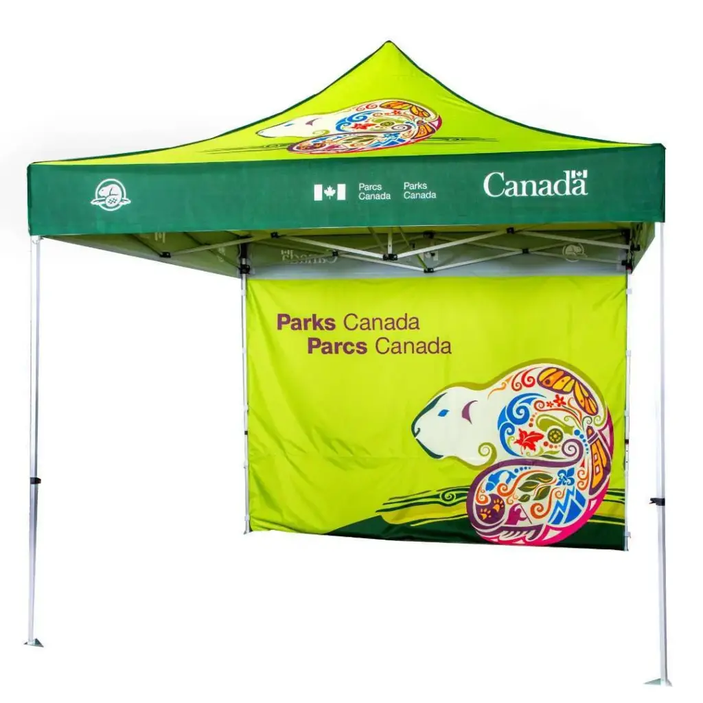 All of our custom pop-up canopy tents are printed on premium 600D PU polyester — a heavy-duty fabric that’s UV-resistant, waterproof, and meets convention centre fire rating standards. Whether indoors or outdoors, these tents are built to perform and designed to impress.